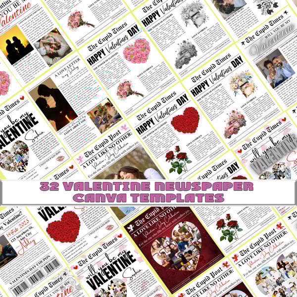 Valentine Newspaper Canva Template Bundle (32 Designs) | Editable Valentine Newspaper Templates | Drag & Drop Canva LayoutsCreate stunning and memorable Valentine keepsakes with this Valentine Newspaper Canva Template Bu...rose