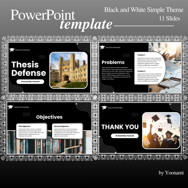 Thesis Defense Presentation Black and White Simple Theme– Ready-to-use PowerPoint Template