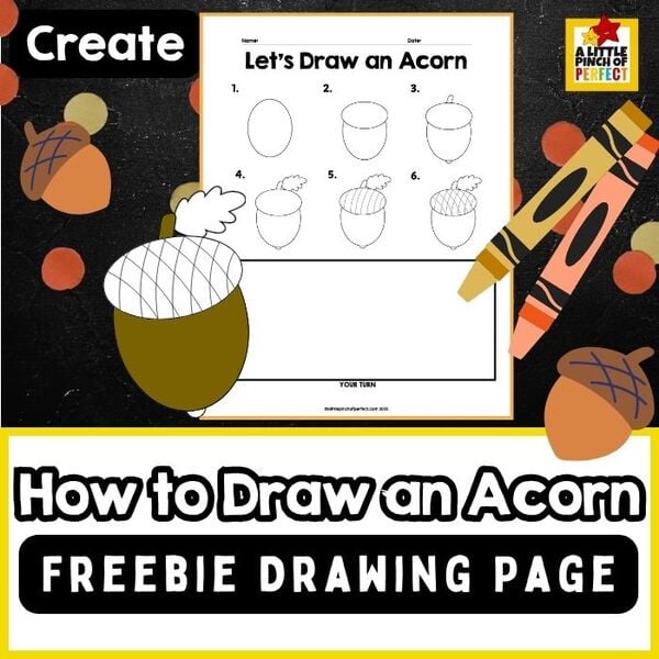Acorn Drawing Tutorial Page Freebie (Preview Thanksgiving Drawing Pages for Kids Pack) alittlepinchofperf