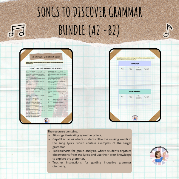 Songs to discover English grammar bundle (A2-B2)