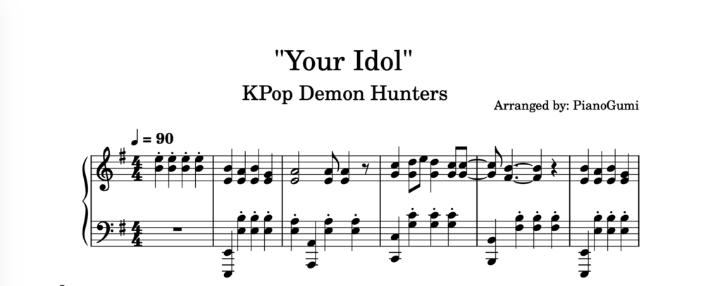 [full] KPop Demon Hunters - "Your Idol" - INTERMEDIATE Piano Sheet Music