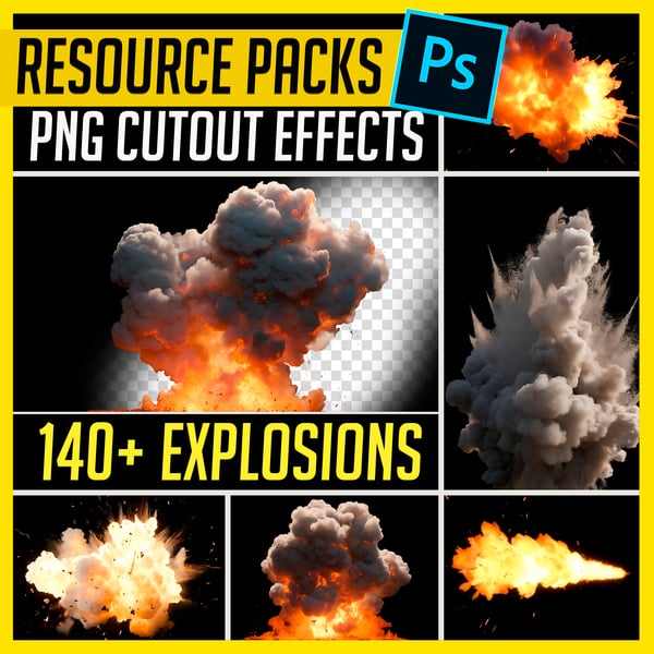 140+ PNG Cutout EXPLOSIONS Effects - Resource Photo Pack for Photobashing in Photoshop