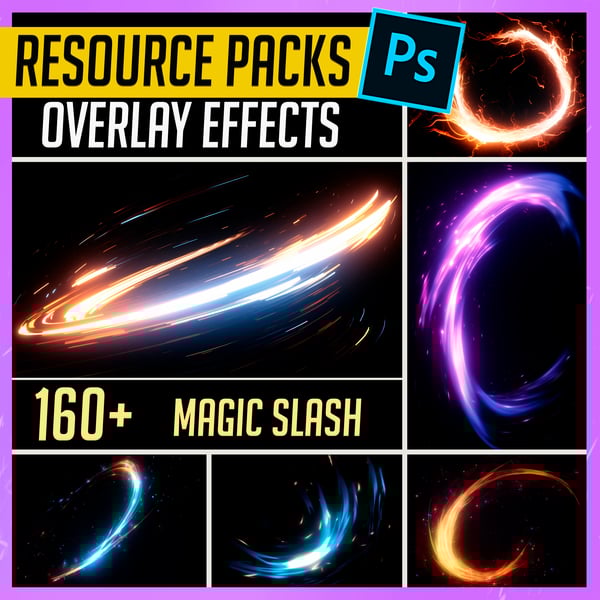 PHOTOBASH 160+ Magic Slash spell Overlay Effects Resource Pack Photos for Photobashing in Photoshop