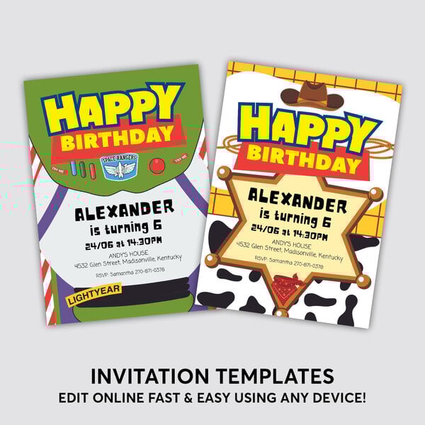 2 Toy Story Invitation Template - Editable in Canva