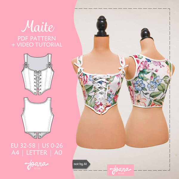 Patrón de costura de corset cierre de lazada delante | MAITE | 14 tallas/14 sizes, PDF A4-LETTER-A0