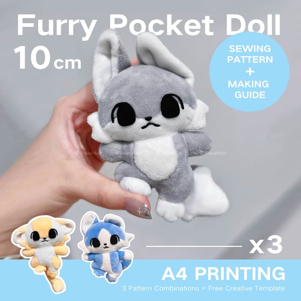 10cm Furry Pocket Fursona Plush Sewing Pattern PDF (English/Español/Deutsch/Français)