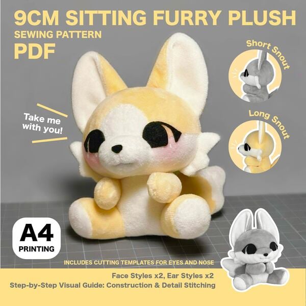 9cm Sitting Fursona Furry Plush Sewing Pattern PDF